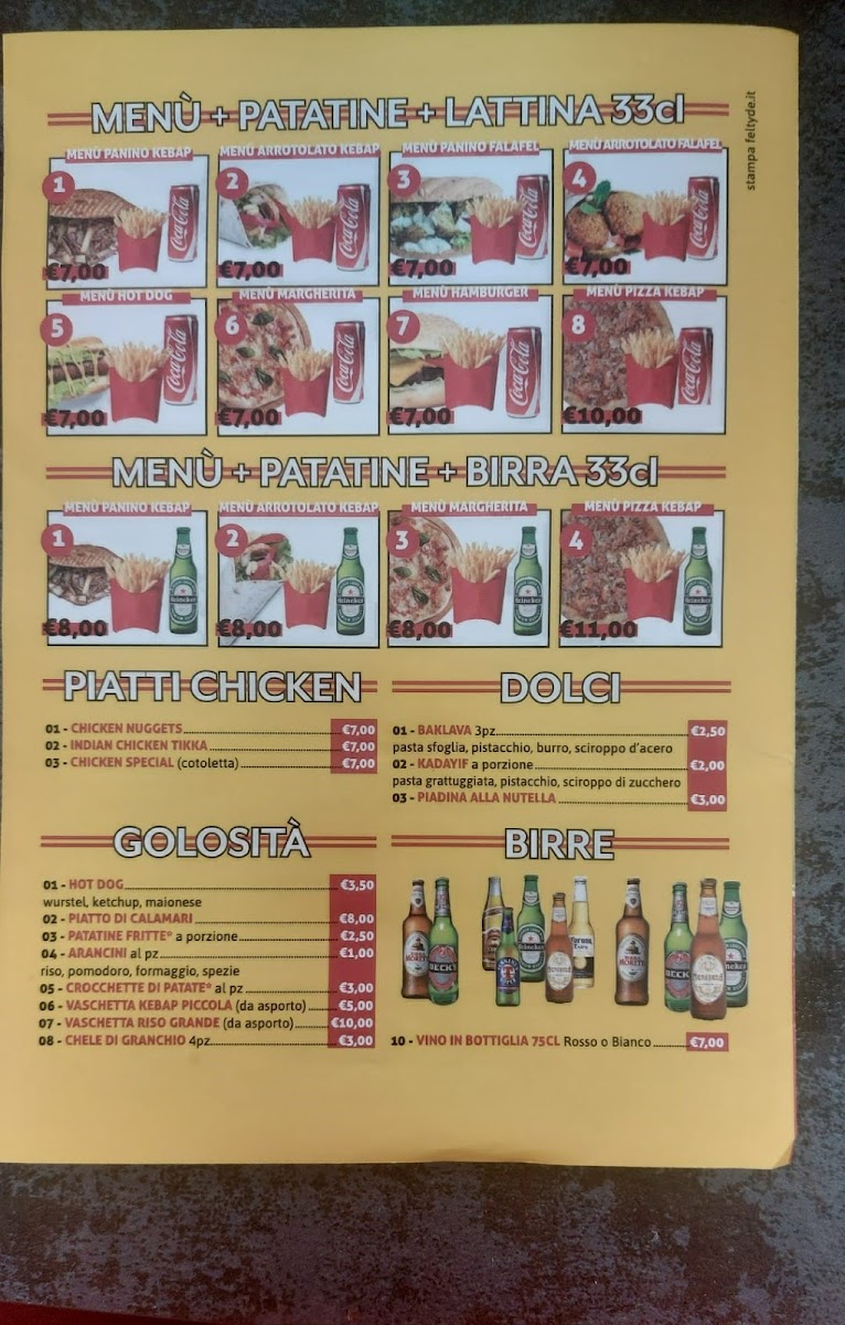 Introducing the menu at Stadium Pizzeria Kebap, located in the heart of Biella, Italy, this eatery stands out with its delightful fusion of pizzas and kebabs. Patrons rave about the diverse selection of kebabs, with the panino kebap frequently mentioned as a favorite. The fresh, vibrant greens enhance each dish, making every bite a burst of flavor.